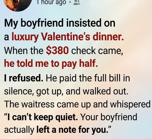 Valentine’s Day has always carried a quiet charm for me, even in its simplest forms. That year, my boyfriend surprised me with plans for dinner at one of the city’s most elegant restaurants. The atmosphere was warm and intimate—soft music drifting through the room, candlelight reflecting across the tables, and a calm, romantic glow surrounding us. We spent the evening talking, laughing, and enjoying each other’s company. For a while, everything felt perfectly arranged.
