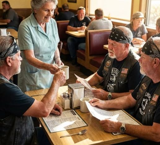 I made them pay before they ate because I didn’t trust them, and that truth still sits heavy with me. When fifteen bikers walked into Maggie’s Diner at nine o’clock on a quiet Tuesday night, every old instinct I had flared up at once. Leather vests marked with patches, thick beards, boots echoing against the tile floor—I’d been running this place for thirty-two years, and I told myself I’d learned to recognize trouble. Without thinking long enough to question myself, I told them I needed payment upfront. The room went still. For a moment, I expected resistance or offense. Instead, the largest man in the group met my eyes calmly, nodded, and said he understood. He paid generously, thanked me for being honest, and led his group to a back corner booth without a single complaint.