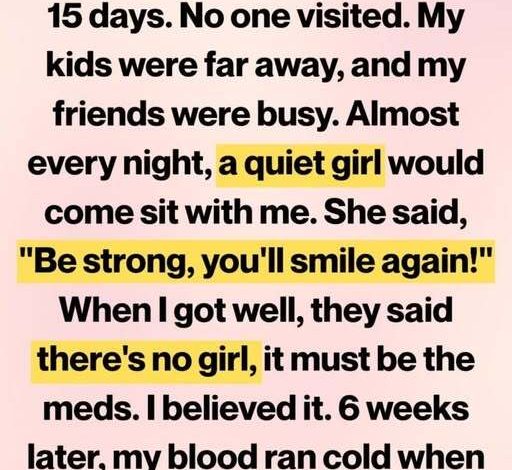 When my voice finally returned, one of the first things I asked a nurse about was the girl. The nurse listened with patience, then gently explained that no visitor fitting that description had been recorded. There were no notes, no entries, no indication that anyone had been coming to sit with me in the evenings.