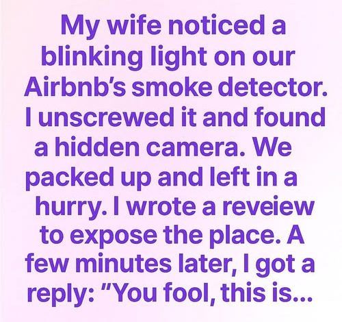 Now, when we travel, we inspect rooms before unpacking. Smoke detectors, alarm clocks, outlets, vents—nothing is ignored. We turn off the lights and use our phone flashlights to look for lens reflections. We avoid rental Wi-Fi and use our own hotspot when possible. If something feels wrong, we leave without hesitation.