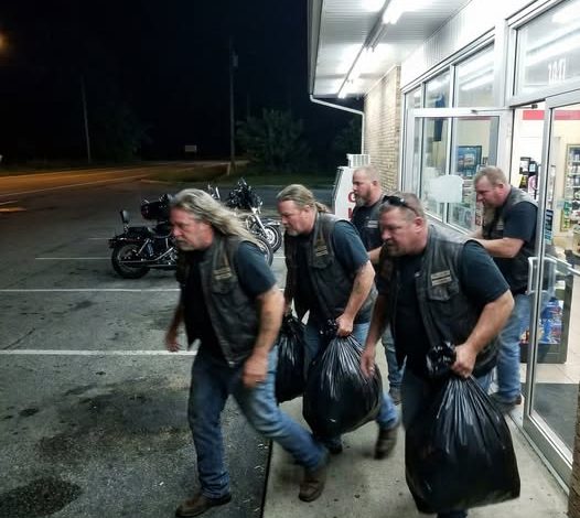 My first instinct was to keep driving. Mind my own business. But then I saw them through the windows. Bikers walking up and down the aisles stuffing things into bags. Formula. Diapers. Canned food. Medicine. Toilet paper. Anything and everything.