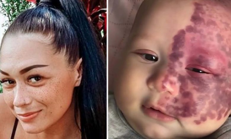 Mum labeled a “monster” for lasering port-wine stain birthmark on her baby’s face after birth