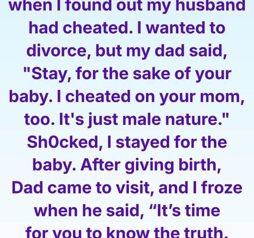 “I cheated on your mom when she was pregnant,” he admitted in a low voice. “It’s… male physiology. It doesn’t mean anything.”