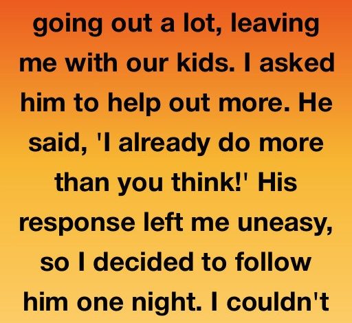 My husband has been going out a lot, leaving me with our kids. I asked him to help out more. He said, “I already do more than you think!” His response left me uneasy, so I decided to follow him one night. I couldn’t believe it when he parked outside a run-down building on the edge of town and walked inside like he belonged there.