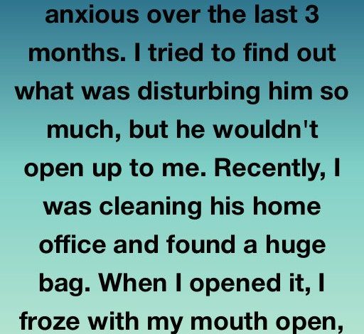 My husband has been very anxious over the last 3 months. I tried to find out what was disturbing him so much, but he wouldn’t open up to me. Recently, I was cleaning his home office and found a huge bag. When I opened it, I froze with my mouth open, because it was full of cash.