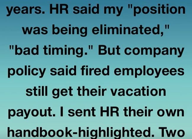 He found that HR had tried the same trick with all of them. Because I spoke up and pointed out the policy, the company was forced to pay out over eighty thousand dollars in back-pay and vacation time to my former colleagues. He thanked me for being the one to pull the thread that unraveled the whole mess.
